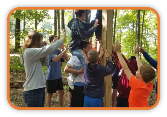 On-site Teambuilding groups are customizable to fit your schedule. Traditional for school groups, arrival times vary from 830am-10am and departure times vary from 1pm-230pm. Each day is broken down into developmentally appropriate activity periods.